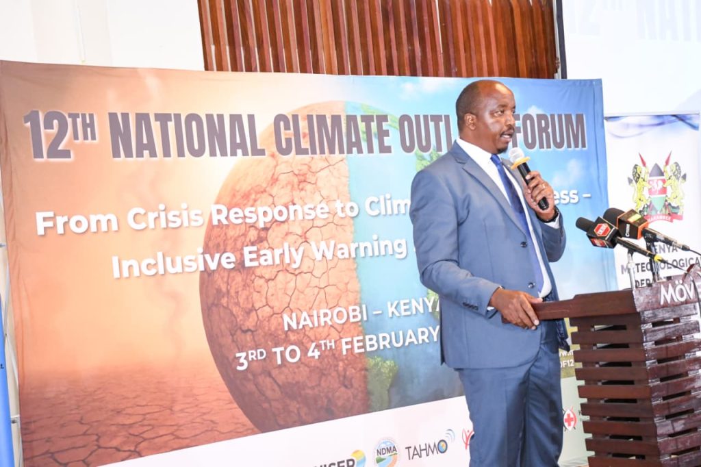 Caption: Edward Muriuki, Acting Director of KMD delivering remarks at the National Climate Outlook Forum , photo courtesy of KMD
